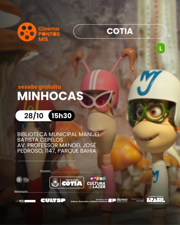 O filme “Minhocas” será exibido novamente no dia 5 de novembro, às 15h30, oferecendo mais uma oportunidade para o público conferir a animação. As sessões são abertas a todos e prometem momentos de lazer e cultura para a comunidade.
