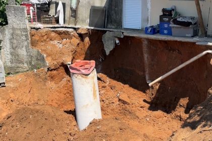 O colapso de solo na parte traseira de uma residência no Jardim…